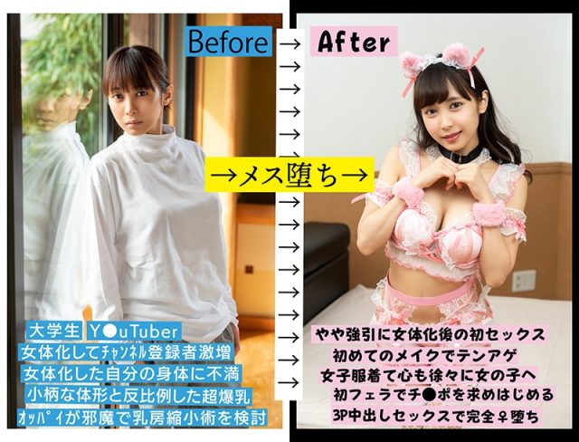 男性が女性の体に変化してしまう奇病‘後天性女体化症’の謎に迫るため、女体化症を発症したとされる元男性を取材をした。 彼はピアノYouTuberで、女体化後にアップした動画がバズったらしい。 今後は女を売りに活動してみてはどうか?と提案すると「エロ路線は嫌だ。ピアノの実力で認められたい」と否定。 しかしまんこの気持ち良さを知ってしまい、徐々に心までメス化してゆく。 彼はピアニストとしての誇りを貫けるのか?
